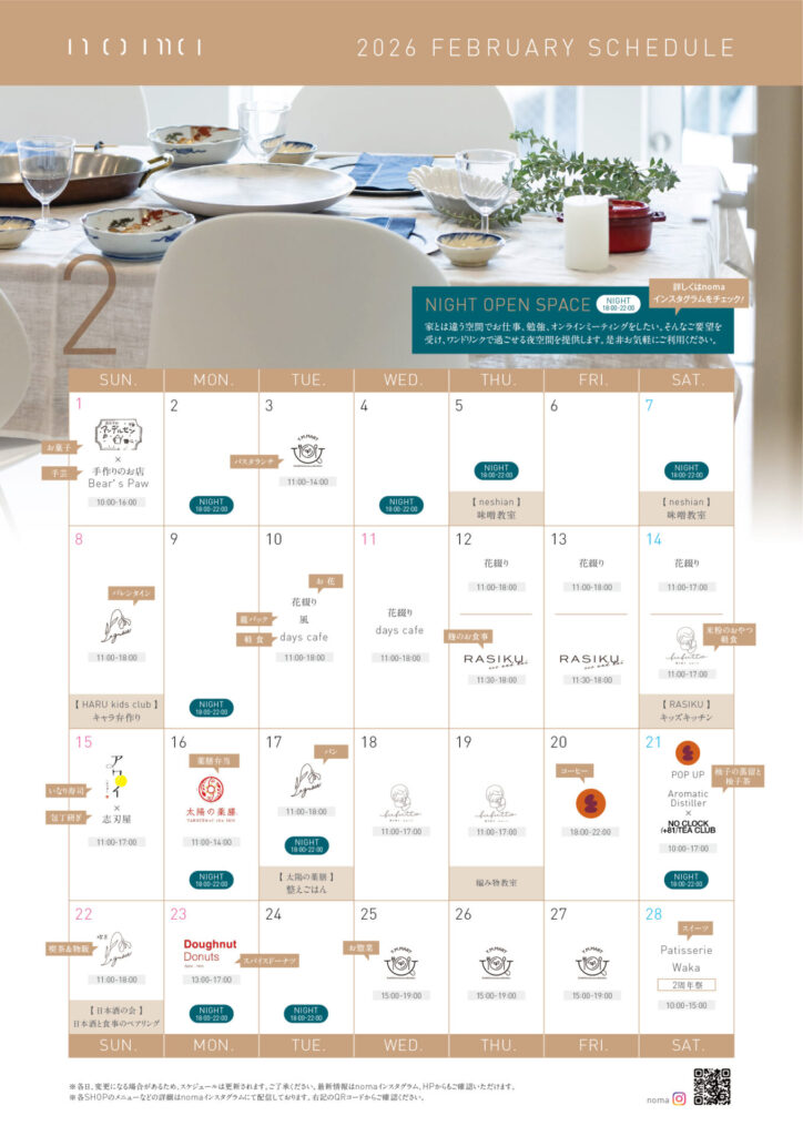 2月も様々な出店者様が出店されます。上記スケジュールをご確認くださいませ!